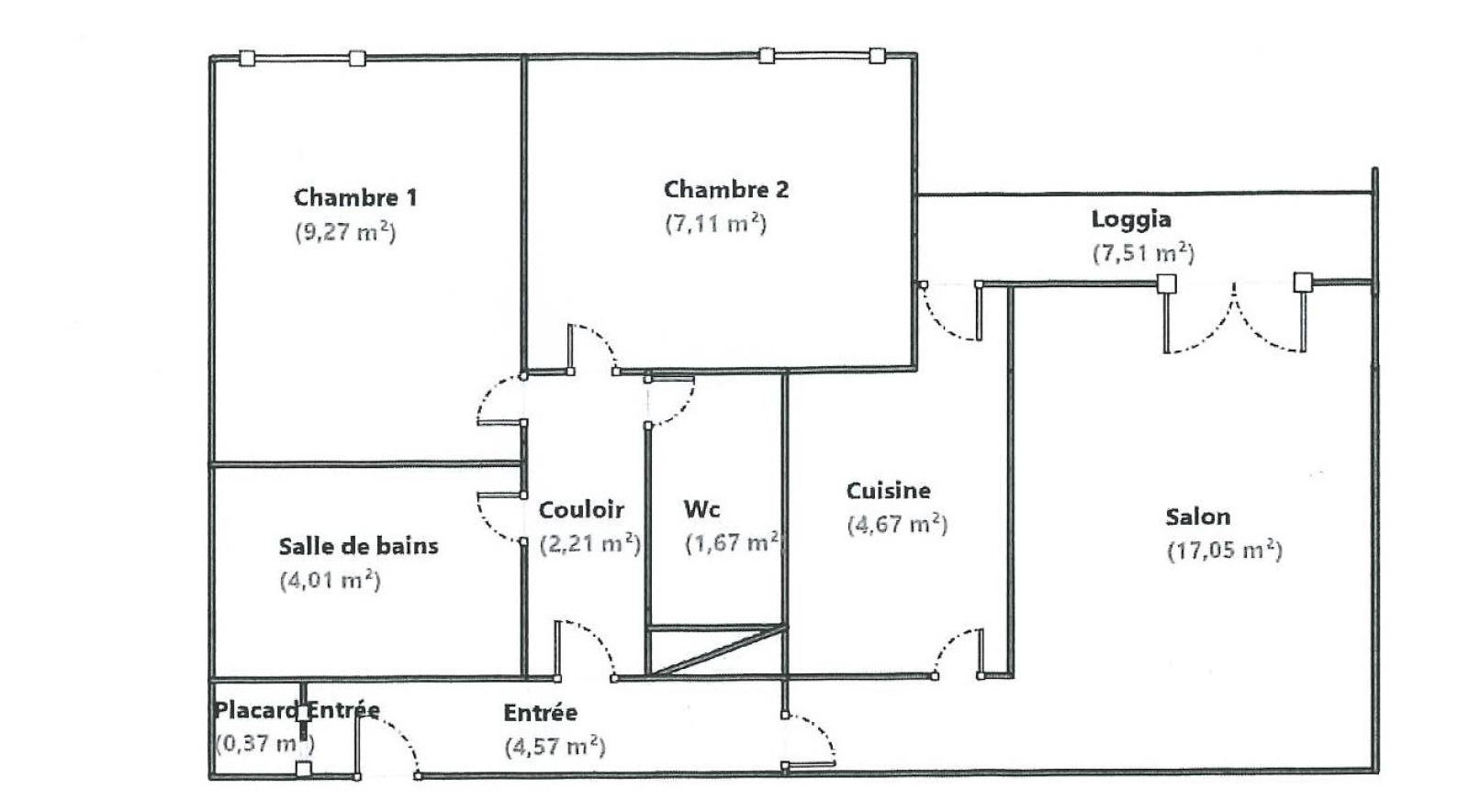Appartement 3 pièce(s) 2 chambre(s) 50 m²