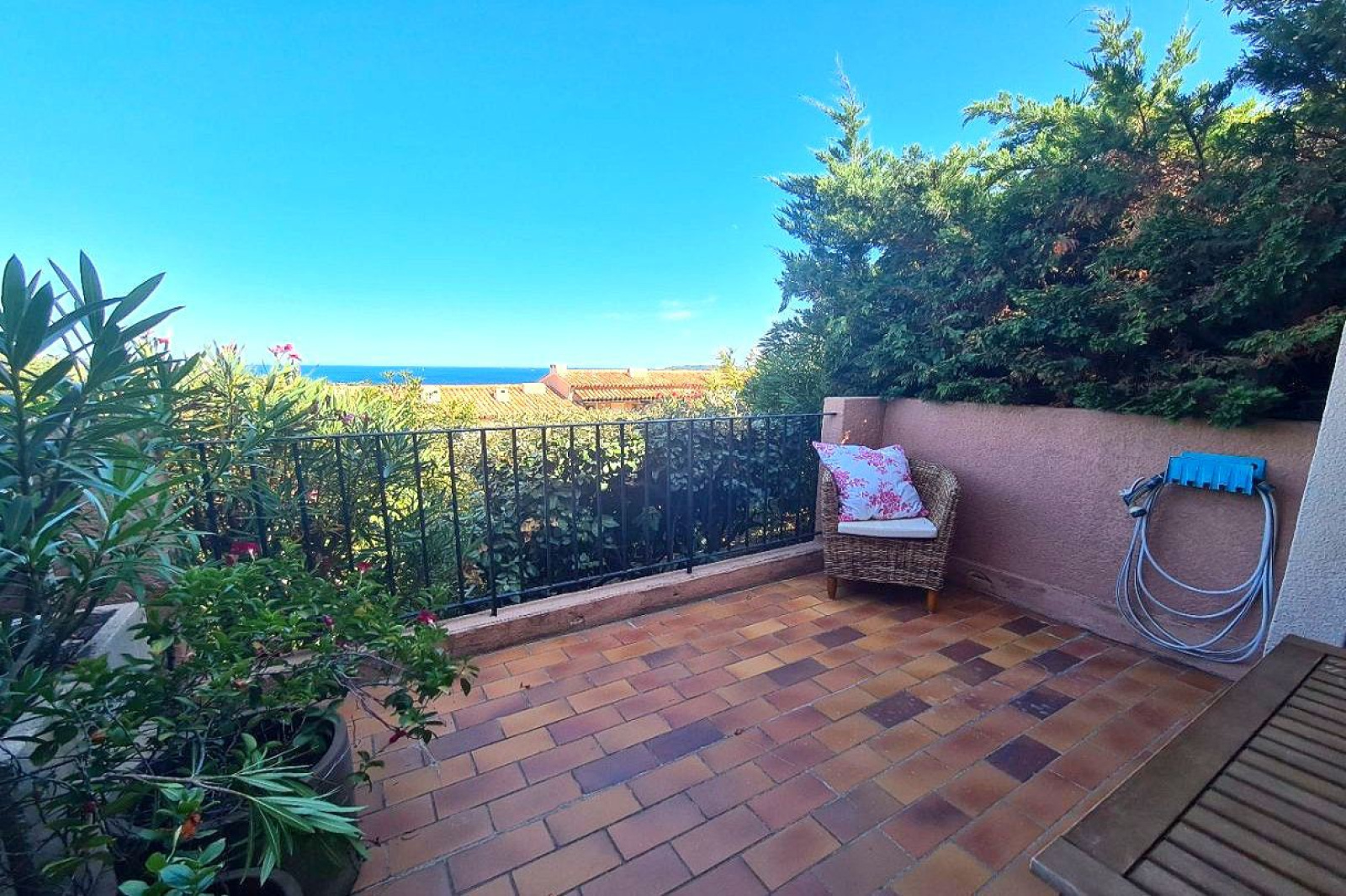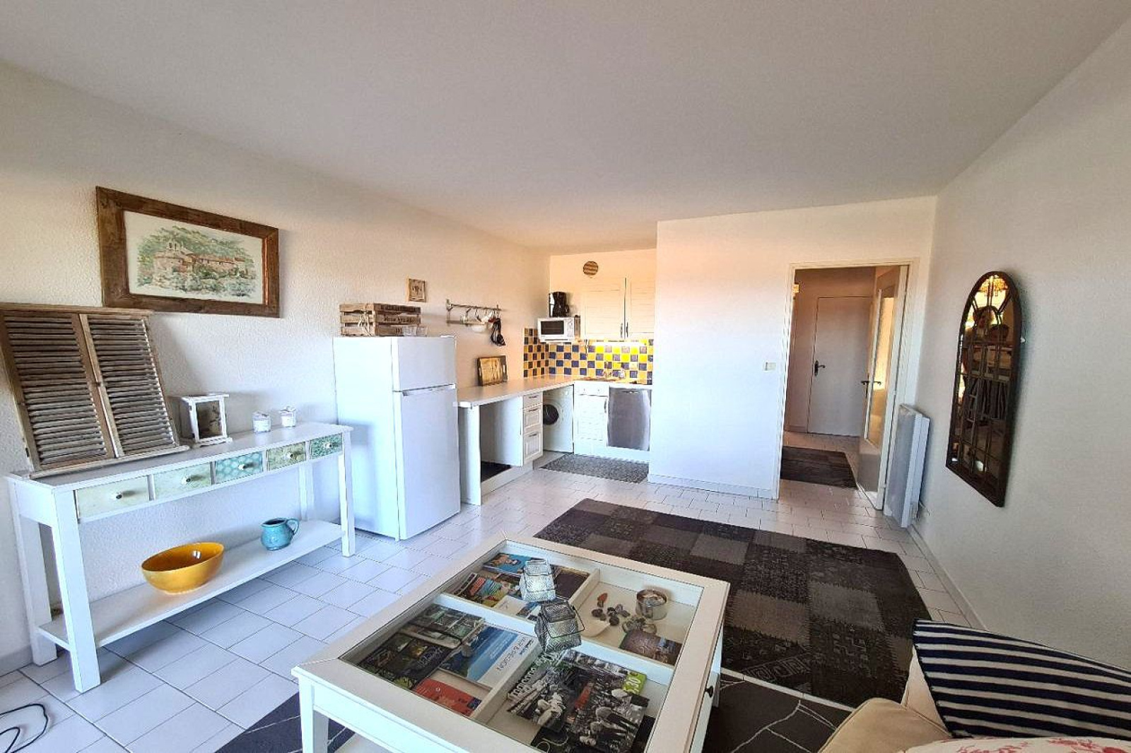 L'agence Modini vous propose en exclusivité un appartement avec vue mer à 2 pas de la plage et à proximité du centre-ville. Le bien se situe dans une copropriété au calme, avec piscine, gardien et stationnement. L'appartement se compose d'une entrée avec coin nuit, une chambre avec terrasse, une salle de bains, toilettes indépendants, une cuisine ouverte sur la pièce de vie, loggia et une terrasse.