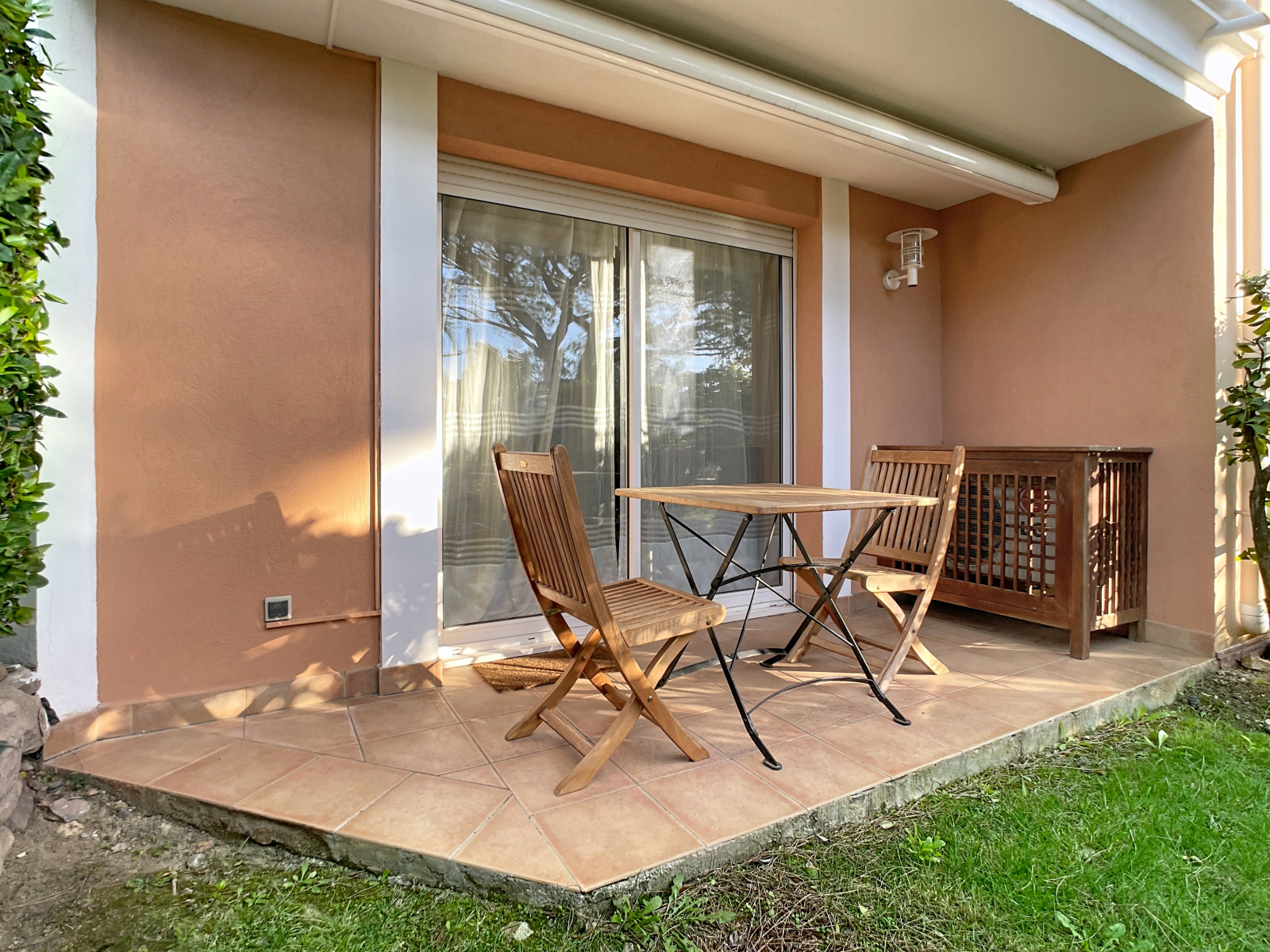 L'agence Modini vous propose en Exclusivité un appartement en rez de jardin 2 pièces + cabine de 44.89m² (loi Carrez) situé dans une résidence sécurisée au milieu des Pins et avec une belle piscine, à + ou - 1.2km du centre ville de Sainte Maxime.Entrée, séjour ouvrant sur terrasse Expo Ouest et jardinet, cuisine ouverte équipée, une chambre avec placard, un coin nuit avec fenêtre, 1 salle de bains et un WC séparé.