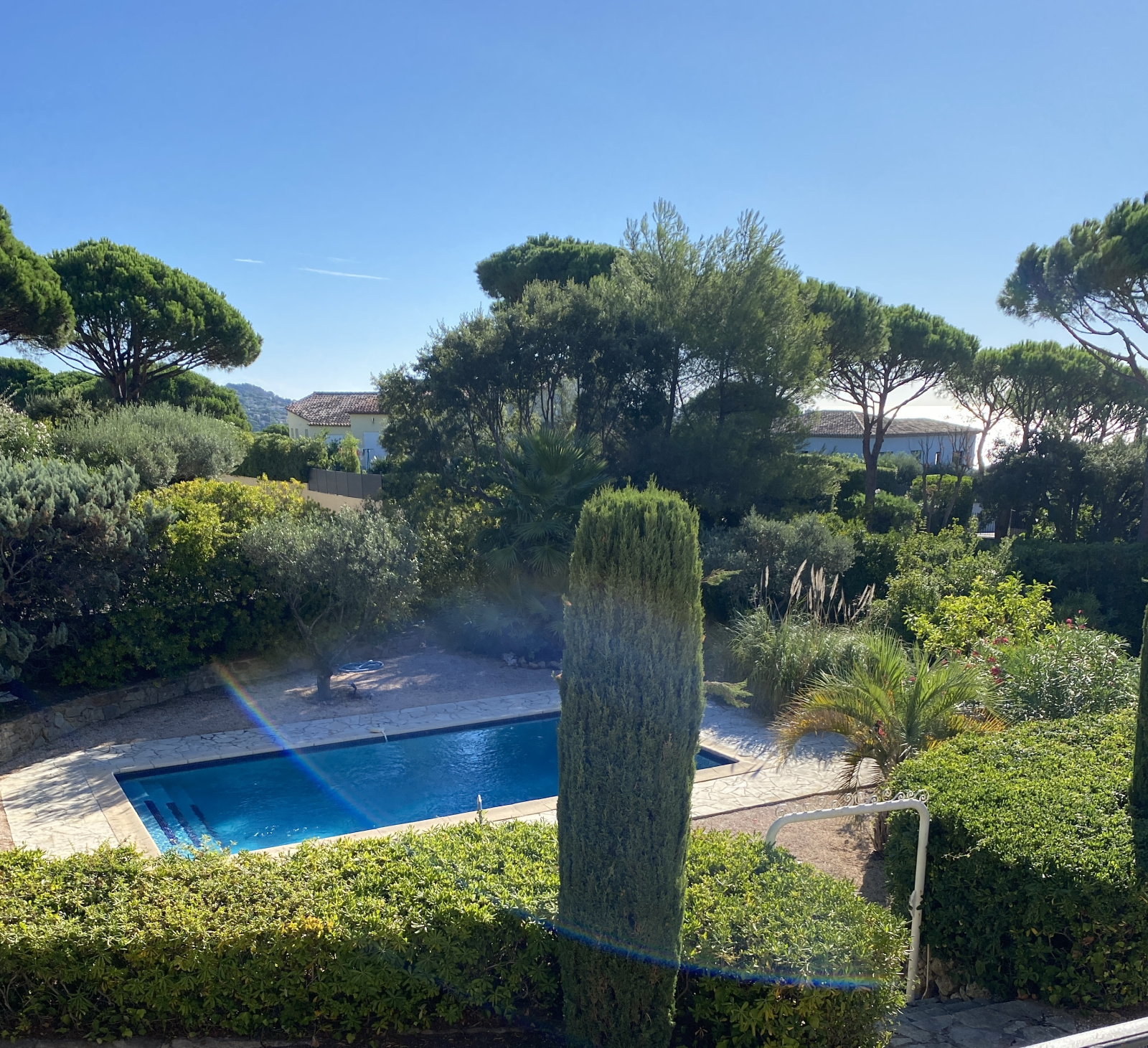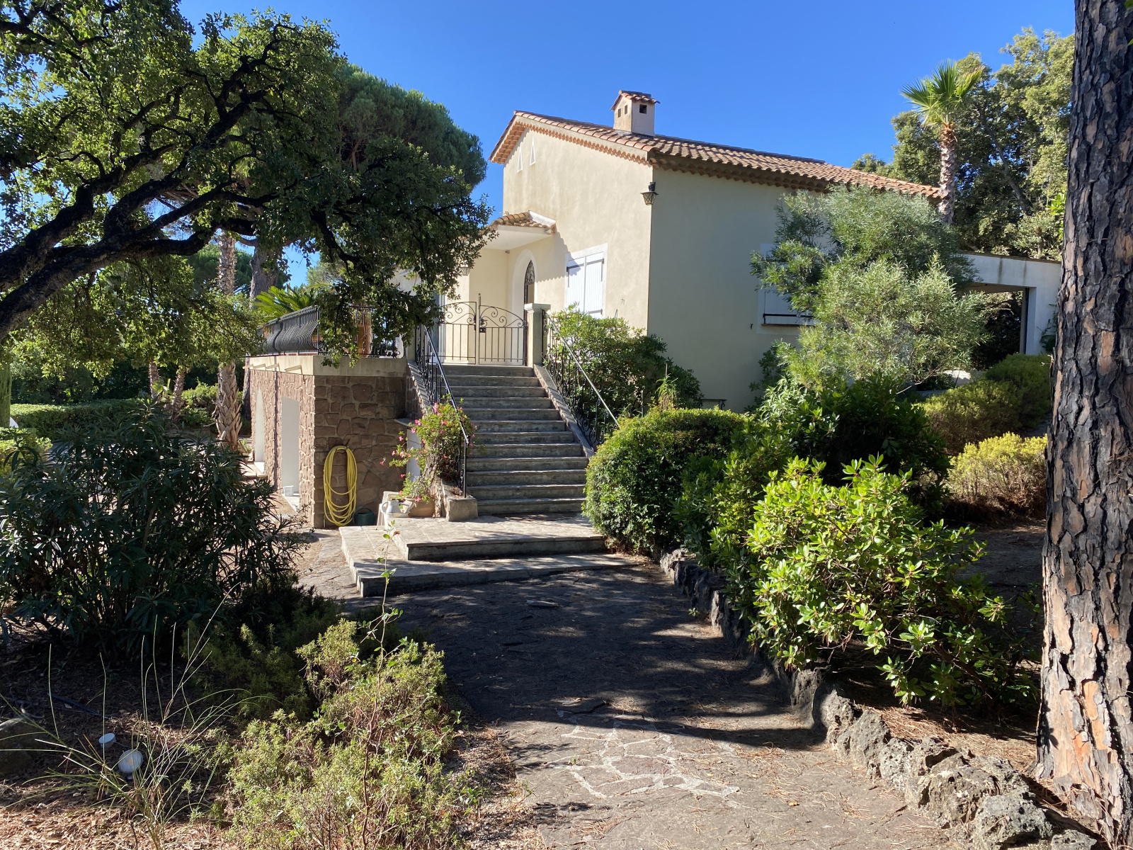 Sur un terrain d'environ 2000 m2 où vous trouverez une piscine , des espaces détente aménagés et arborés se trouve cette Villa .